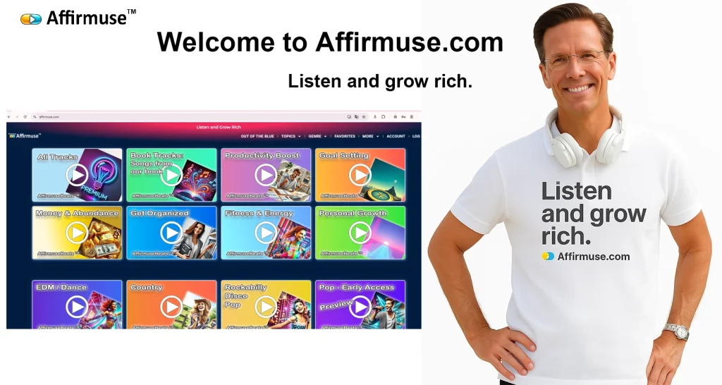 🎧 Subconscious reprogramming through music – that’s Affirmuse. Listen and Grow in every area of life!